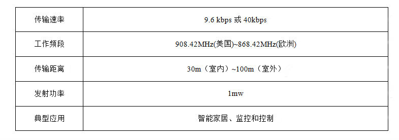 Z-Wave是一種新興的基于射頻的、低成本、低功耗、高可靠、適于網(wǎng)絡(luò)的短距離無線通信技術(shù)。工作頻帶為908.42MHz(美國(guó))~868.42MHz(歐洲),采用FSK(BFSK/GFSK)調(diào)制方式,數(shù)據(jù)傳輸速率為9.6 kbps,信號(hào)的有效覆蓋范圍在室內(nèi)是30m,室外可超過100m,適合于窄寬帶應(yīng)用場(chǎng)合。隨著通信距離的增大,設(shè)備的復(fù)雜度、功耗以及系統(tǒng)成本都在增加,相對(duì)于現(xiàn)有的各種無線通信技術(shù),Z-Wave技術(shù)將是最低功耗和最低成本的技術(shù),有力地推動(dòng)著低速率無線個(gè)人區(qū)域網(wǎng)。