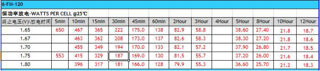 12V120Ah蓄電池恒功率放電時(shí)間表